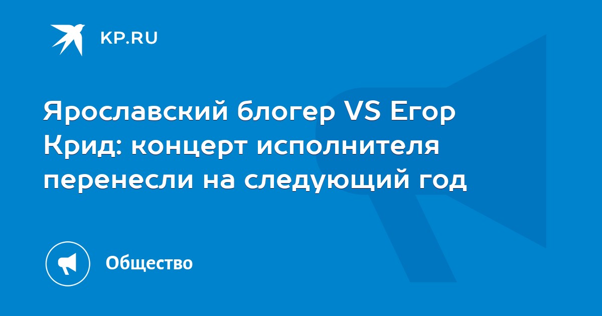 Концерт Егора Крида, который должен был пройти в Ярославле 16 октября, не состоится. Его перенесли на февраль 2020 года. Также, если верить афише, возрастное ограничение мероприятия изменили с «12+» на «18+».